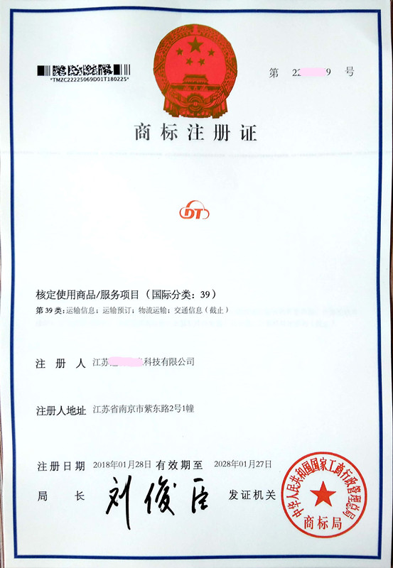 "DT" 39类商标注册证下达