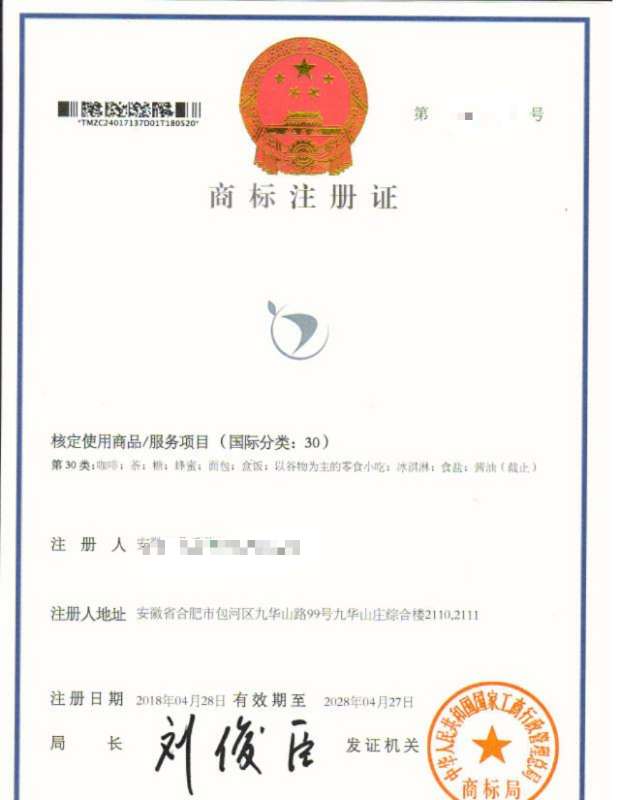 您委托我所代理商标注册申请,名称为“图形”30类商标注册证已下达。